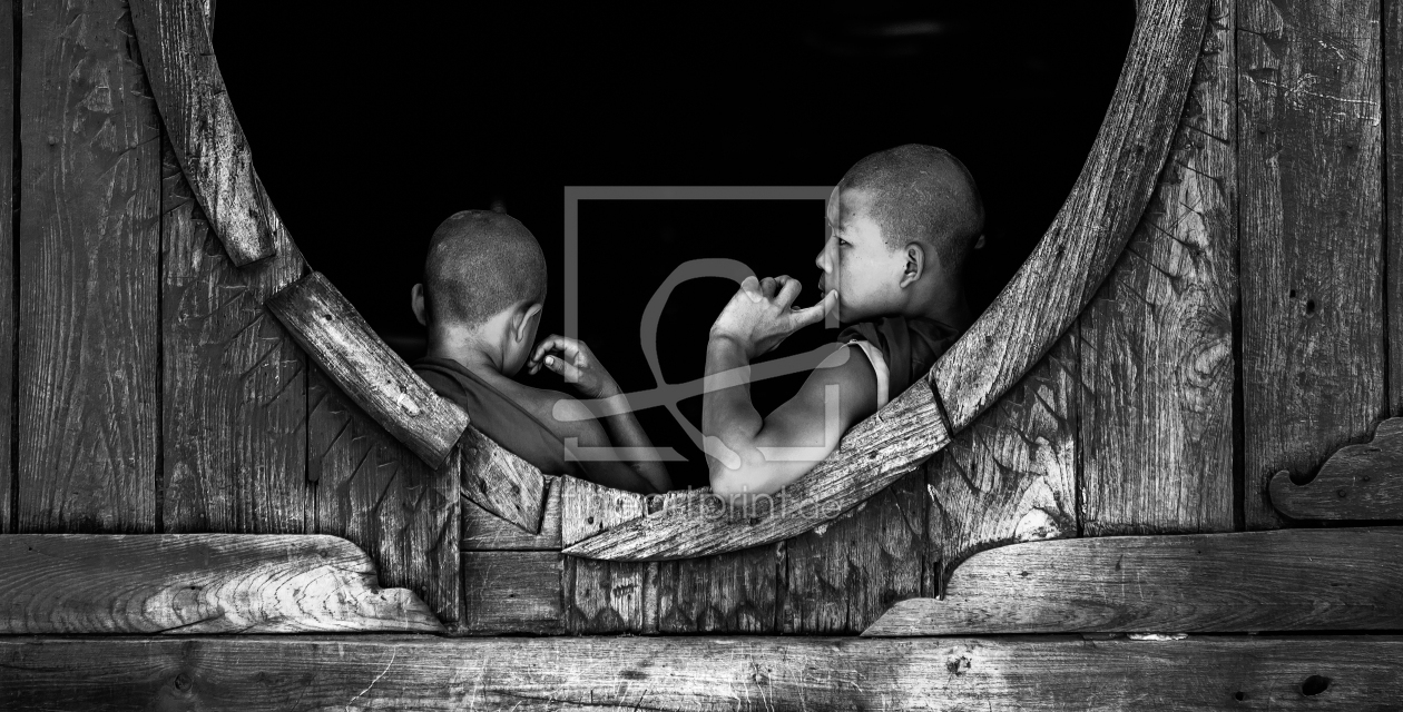 Burma - Reflektierende Mönche Schwarz Weiß
