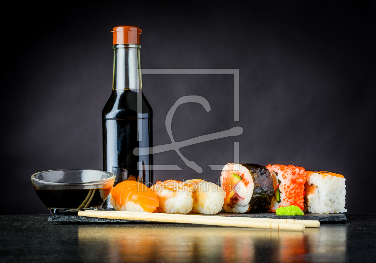 Sushi und Sashimi mit Sojasauce