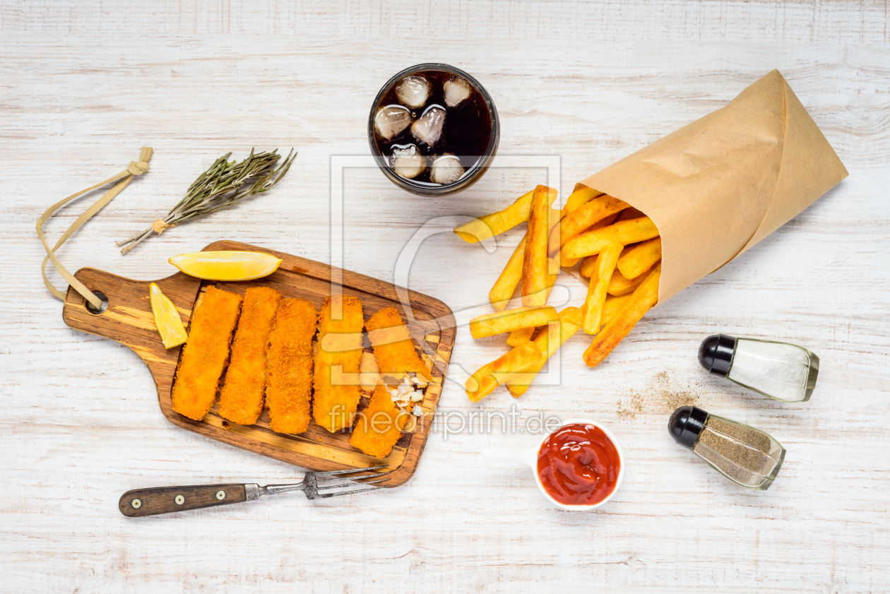 Fischtstäbchen mit Pommes und Cola