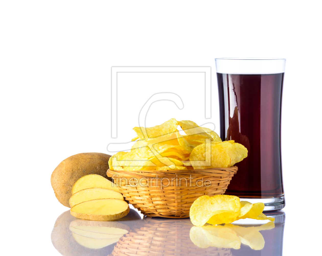 Cola mit Kartoffelchips auf Weiß Hintergrund