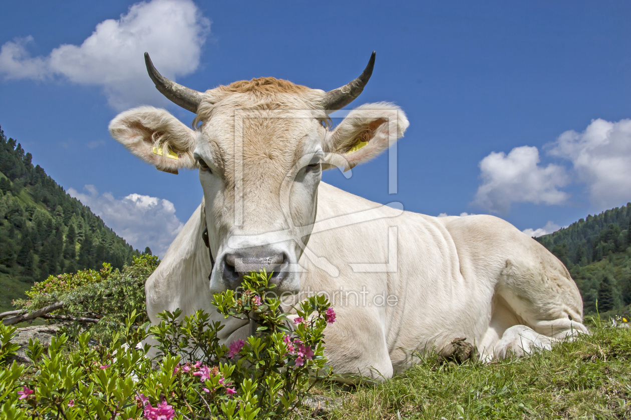 Kuh auf einer Almwiese in den Stubaier Alpen