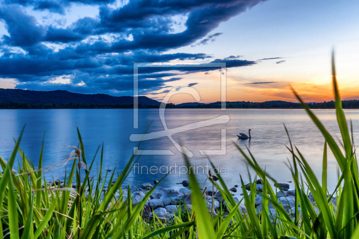 Ein Schwan im Sonnenuntergang am Bodensee