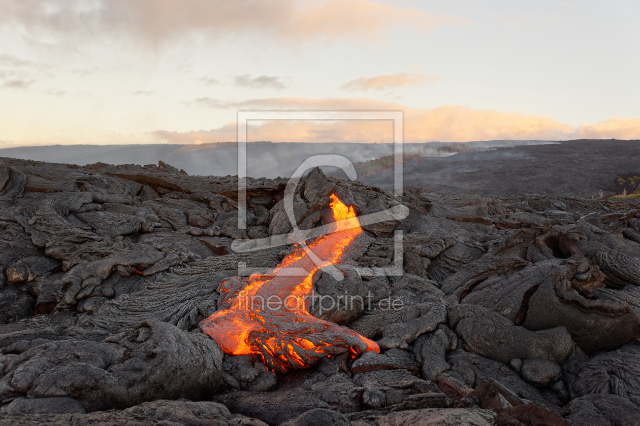 Vulkangebiet mit glühendem Lavastrom auf HawaiiLav