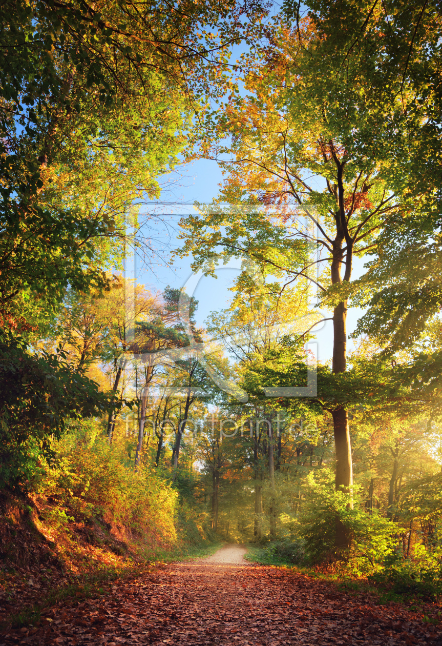 Waldweg im schönen Herbstlicht