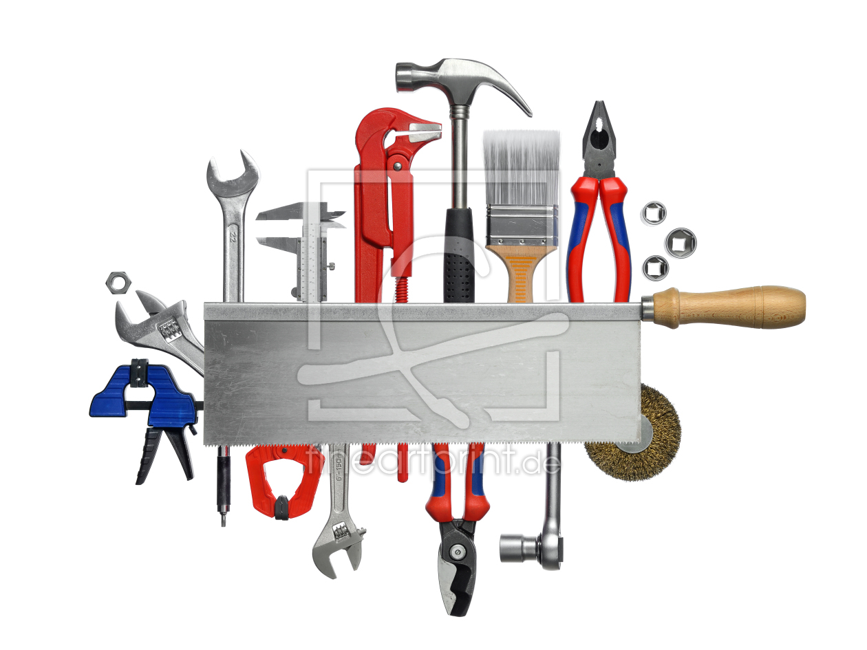 Werkzeuge auf reinem Weiß stilvoll arrangiert