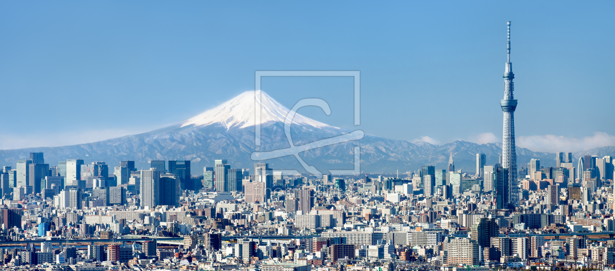 Tokyo skyline mit Mount Fuji und Skytree im Winter