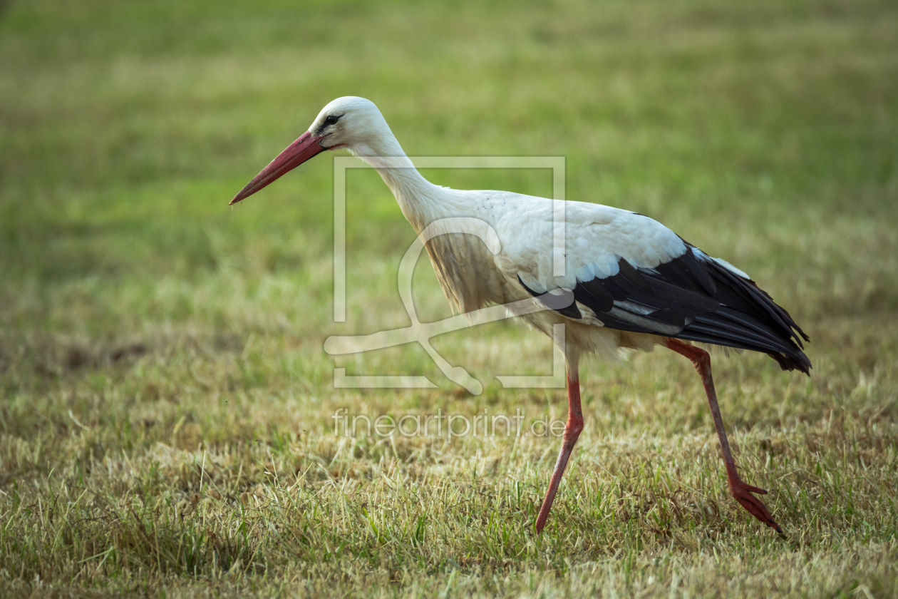 Storch und Wiese im Frühling