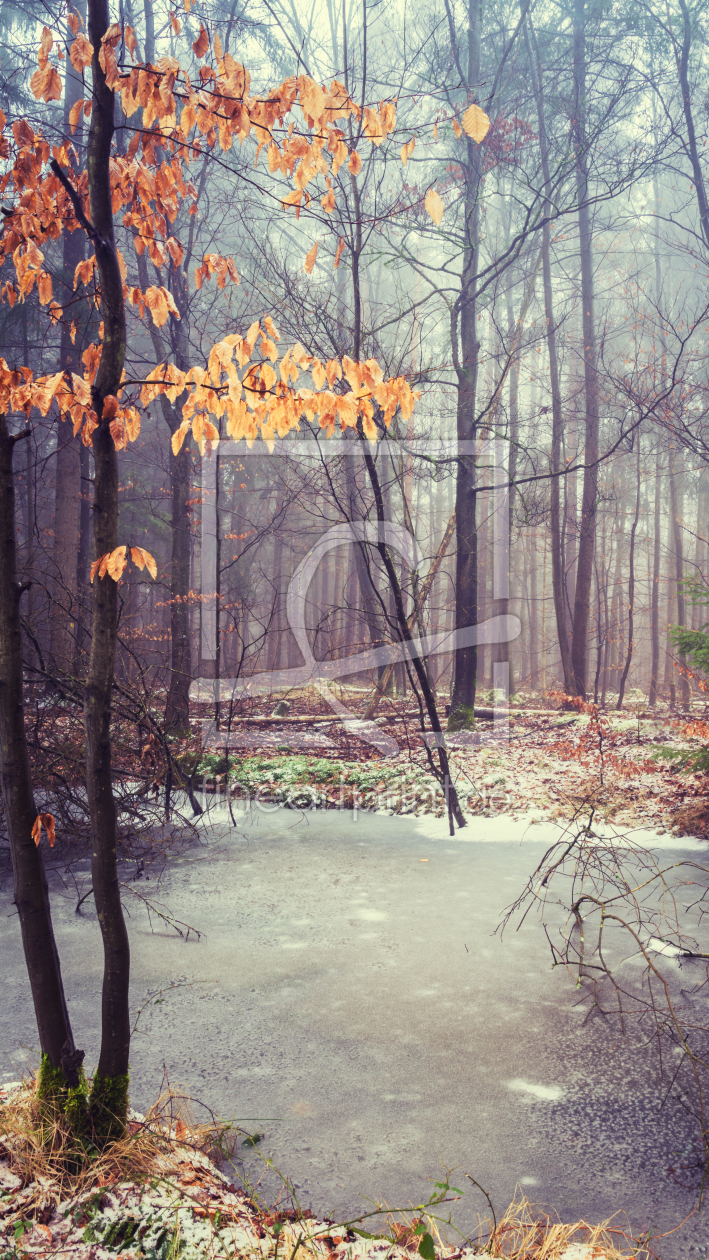 Wald mit vereistem Teich