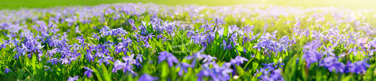 Blaue Glockenblumen auf sonnenbeschienener Wiese