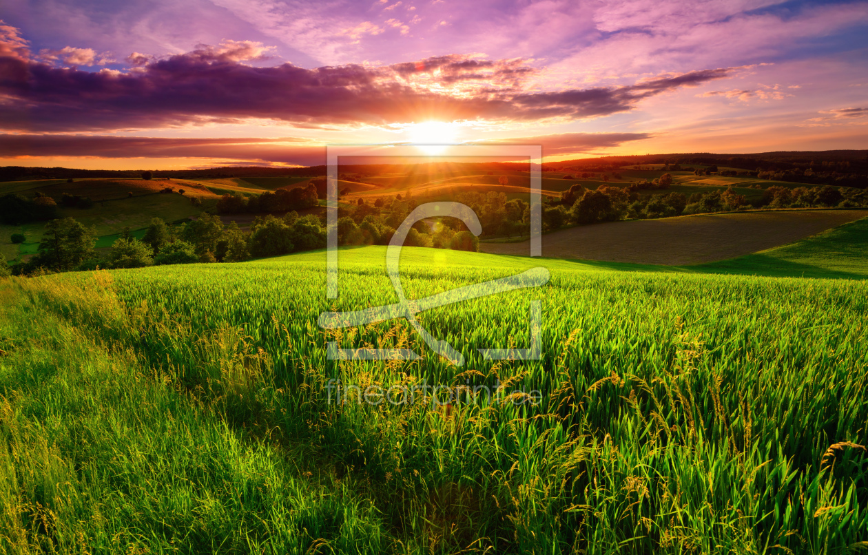 Farbenfroher Sonnenuntergang auf grünem Feld