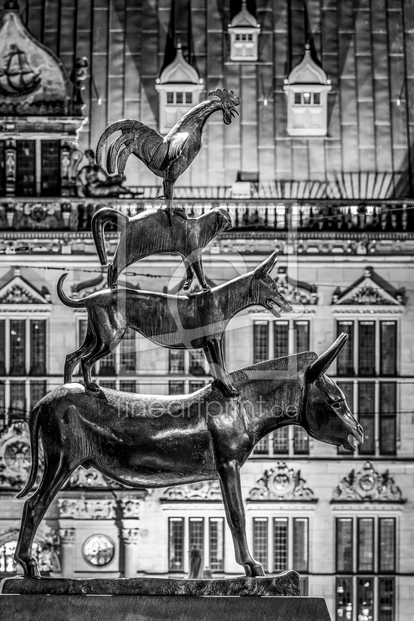 Bremer Stadtmusikanten in Bremen - monochro...
