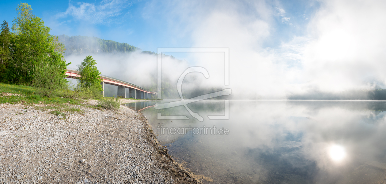 Brücke am Sylvensteinsee mit Spiegelung