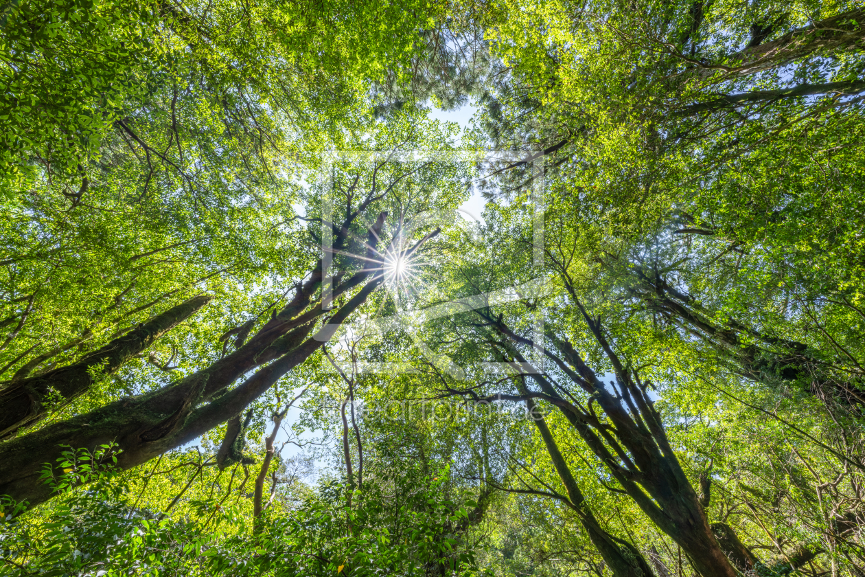 Sonnenlicht scheint durch die Baumkronen