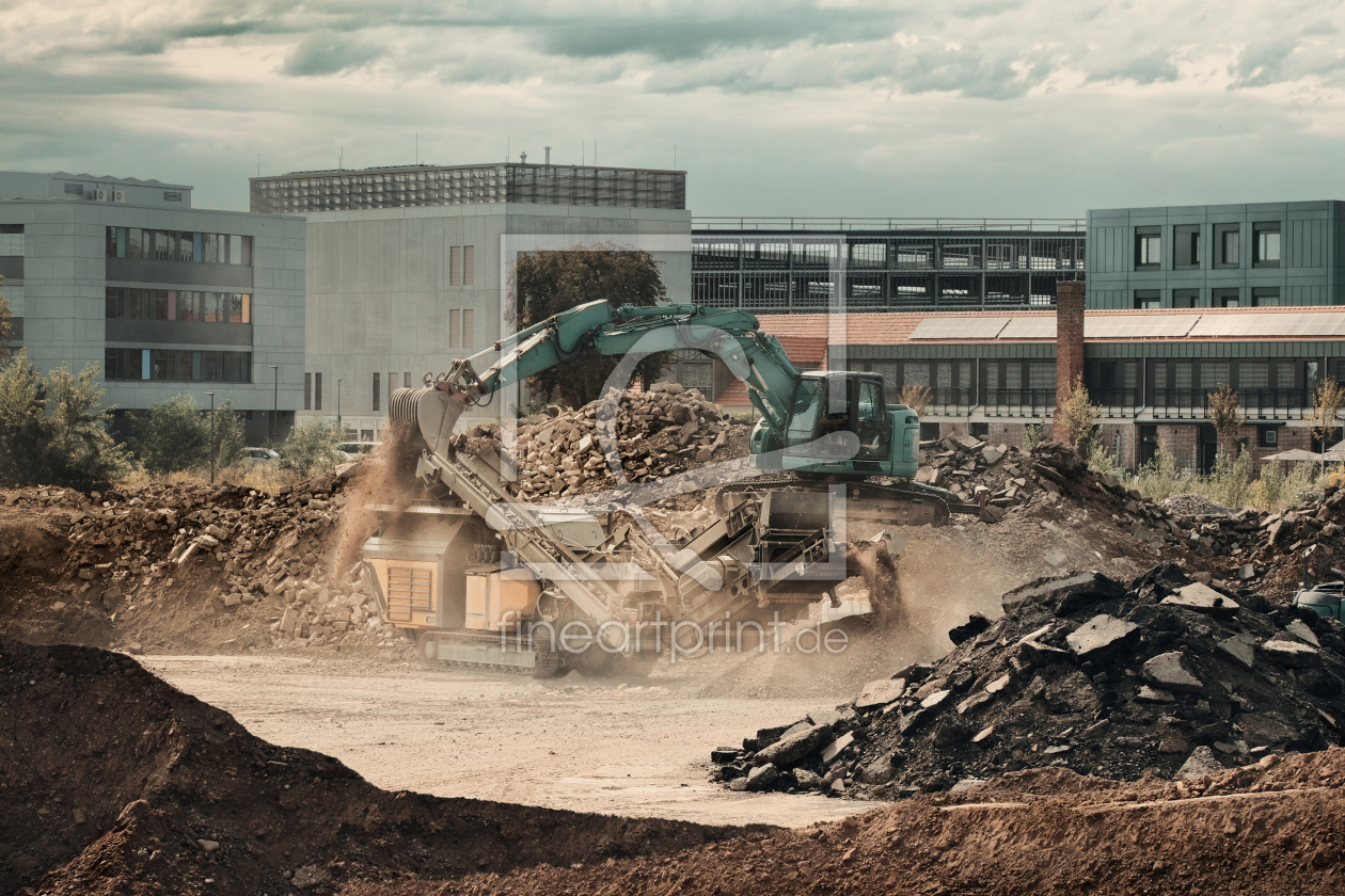 Baustelle mit Bagger bei der Arbeit