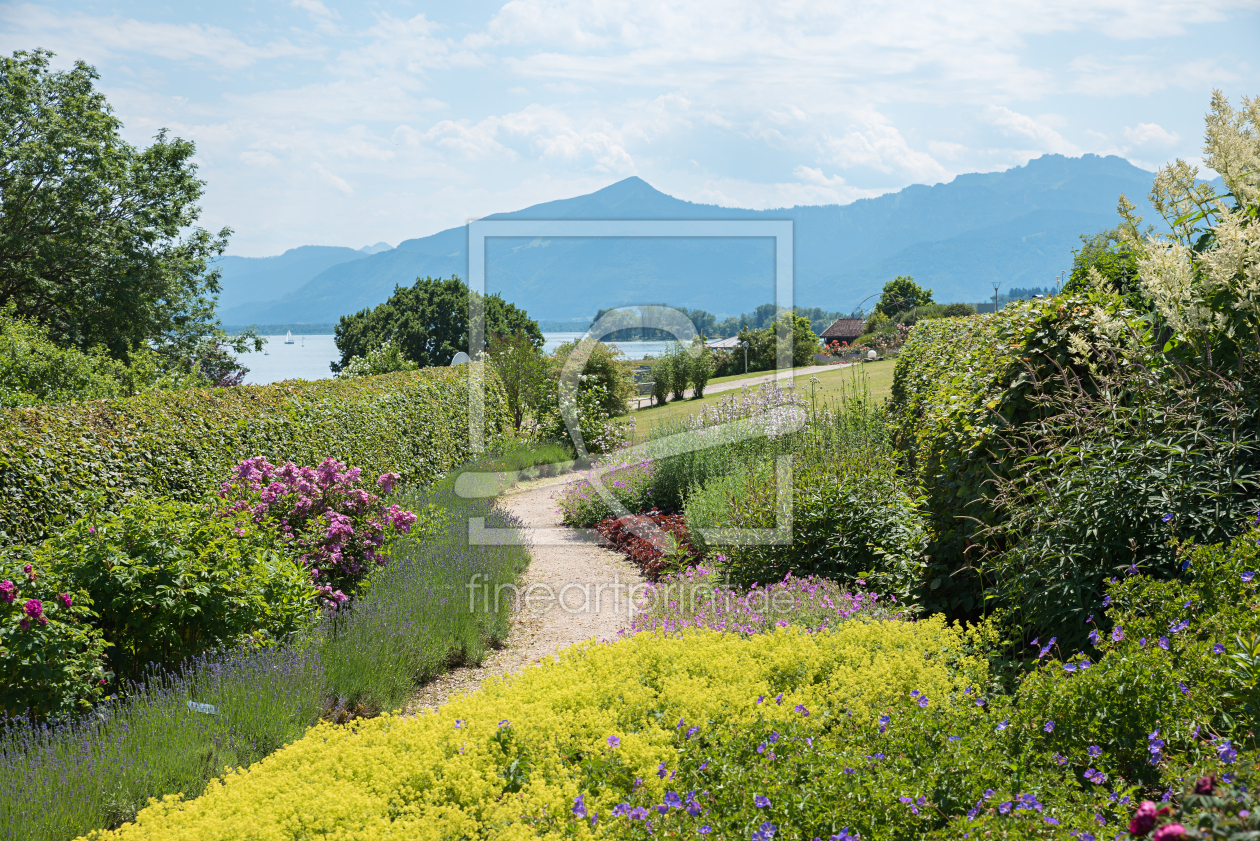 Park mit Blumenbeeten und Chiemseeblick