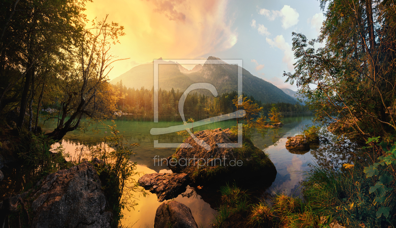 Sonnenuntergang am See mit malerischen Berg...