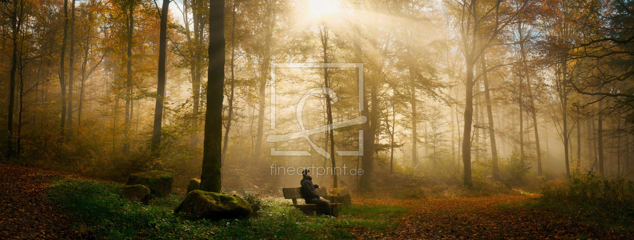 Goldenes Sonnenlicht bei Nebel im Redwood-W...