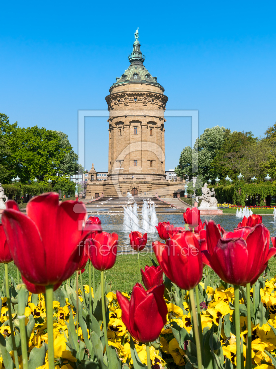 Bild-Nr.: 11915441 Mannheimer Wasserturm mit roten Tulpen im Frühling erstellt von eyetronic