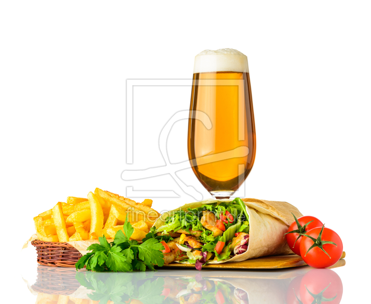 Bild-Nr.: 11917371 Shawarma mit Pommes und Bier auf Weiß erstellt von xfotostudio