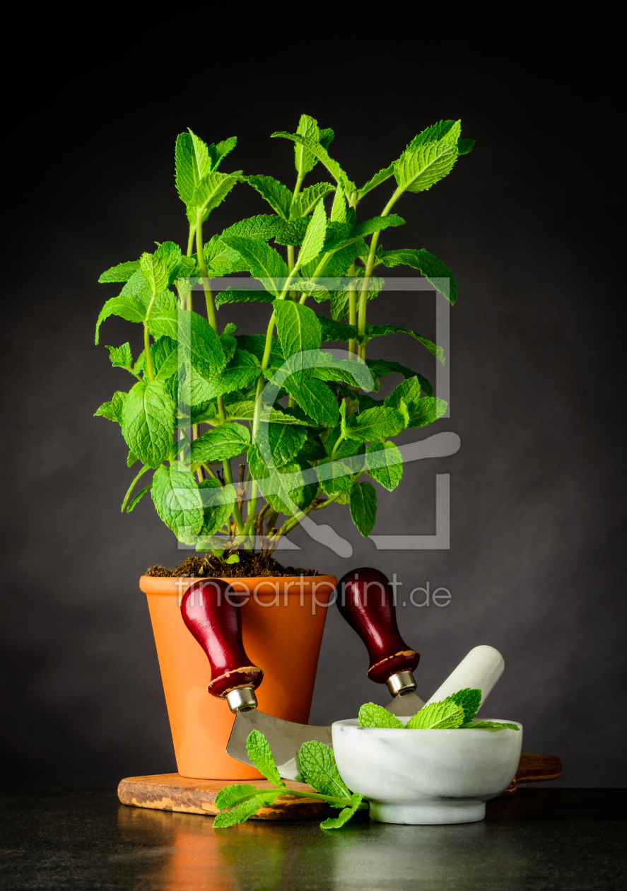 Stillleben mit Pfefferminzei im Blumentopf
