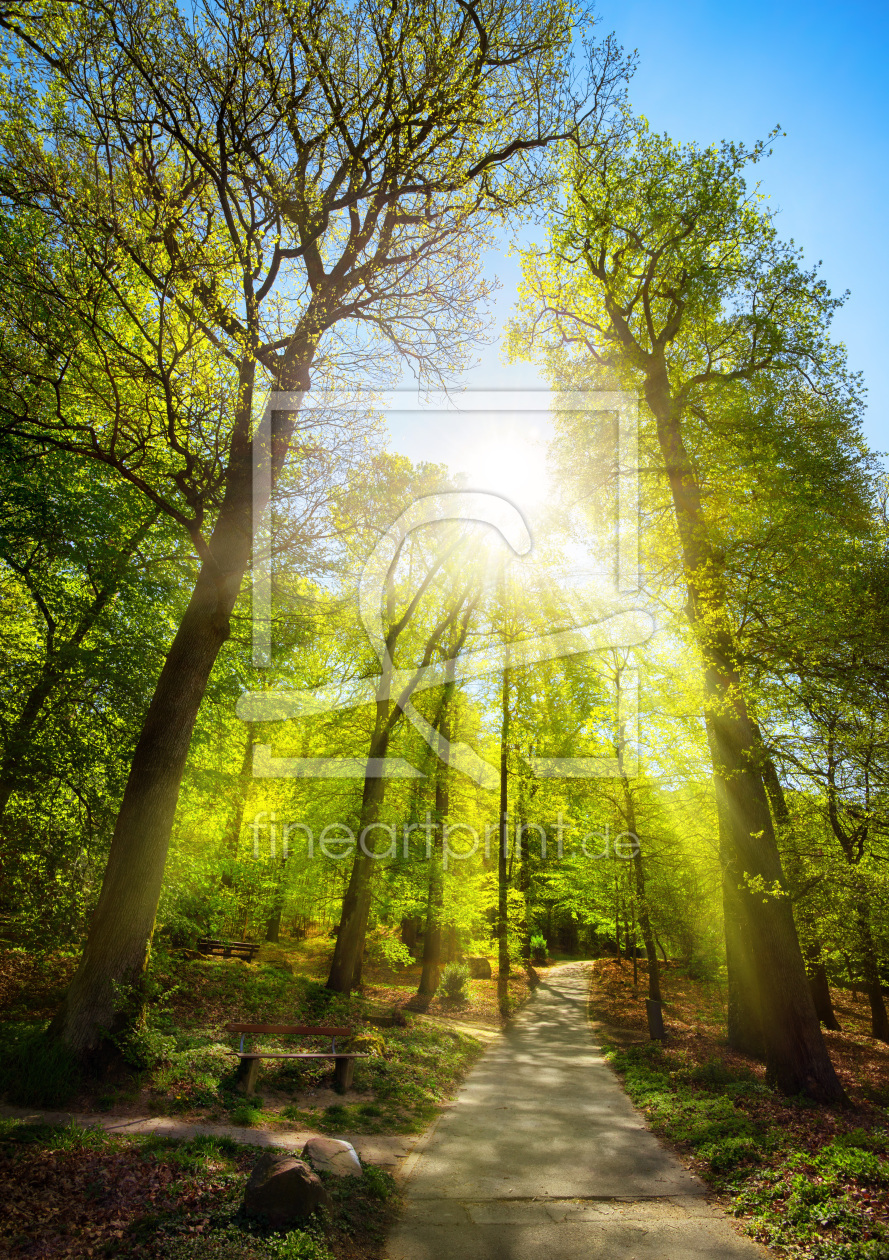 Die Sonne scheint durch Bäume im Park