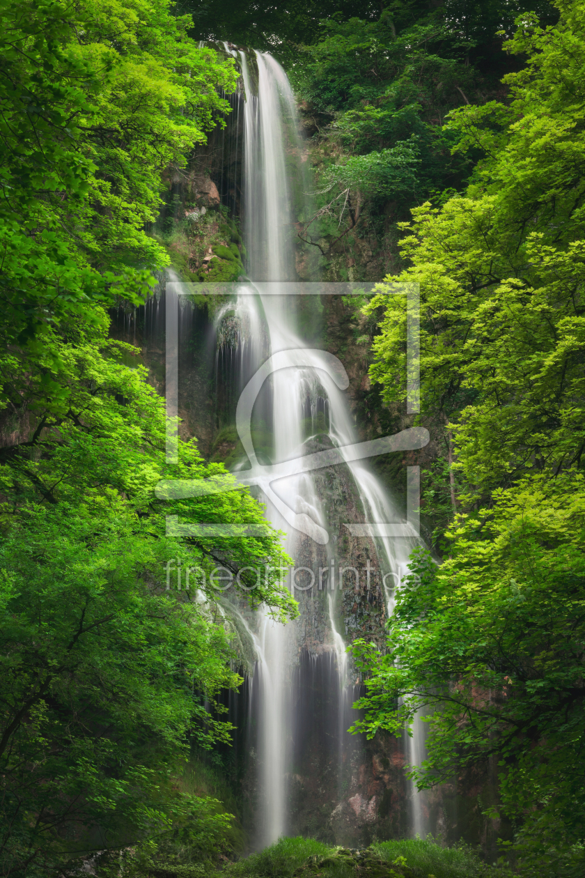 Ruhiger Wasserfall umrahmt von frischem Grün