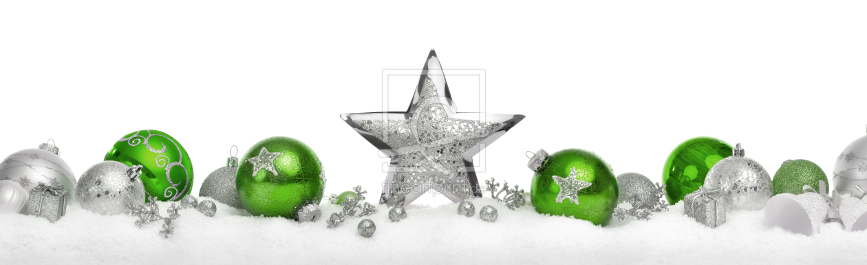 Weihnachtsdeko Bordüre in silber und grün auf weiß