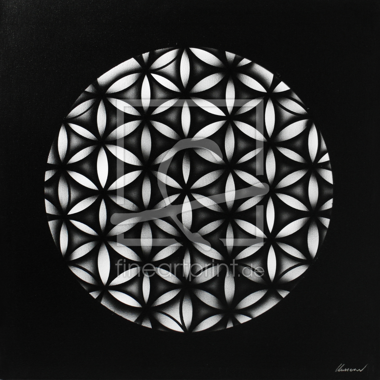 Lebensblume, weiß schwarz