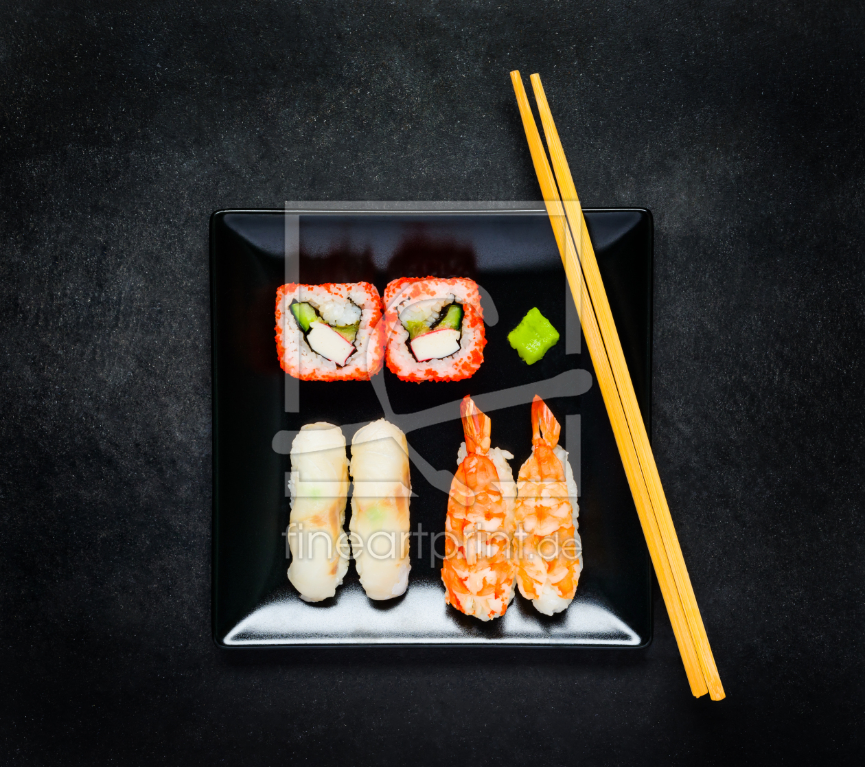 Sushi und Zutaten auf Schwarzem Hintergrund