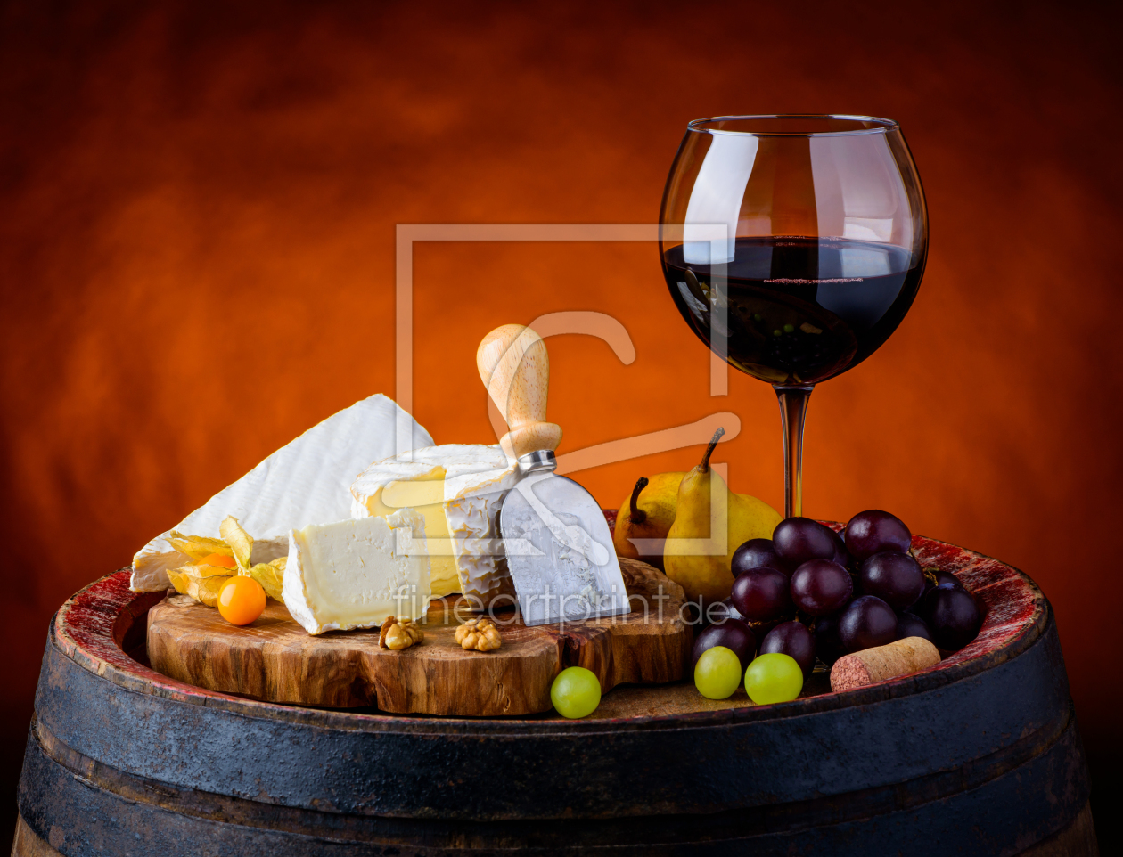 Stillleben mit Rotwein und Geräuchertem Fleisc...