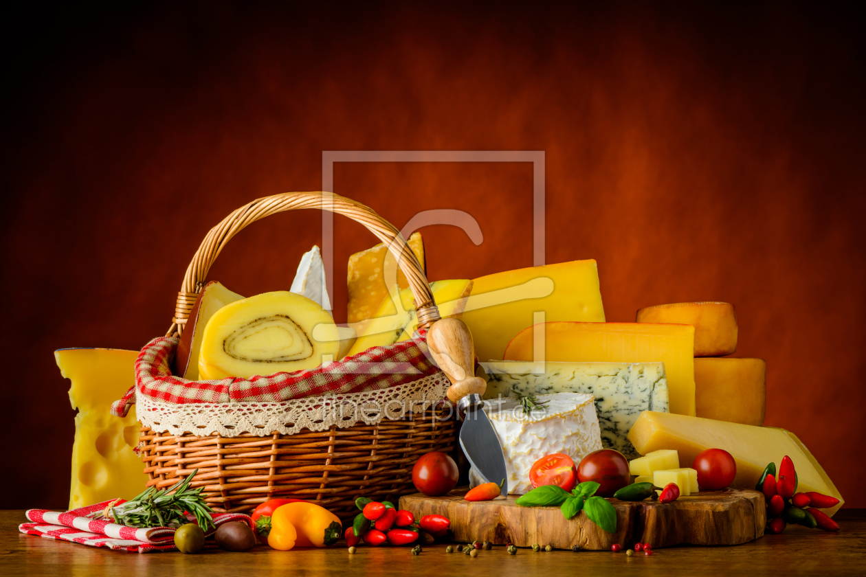 Käsesorten und Brötchen auf Weißem Hintergru...