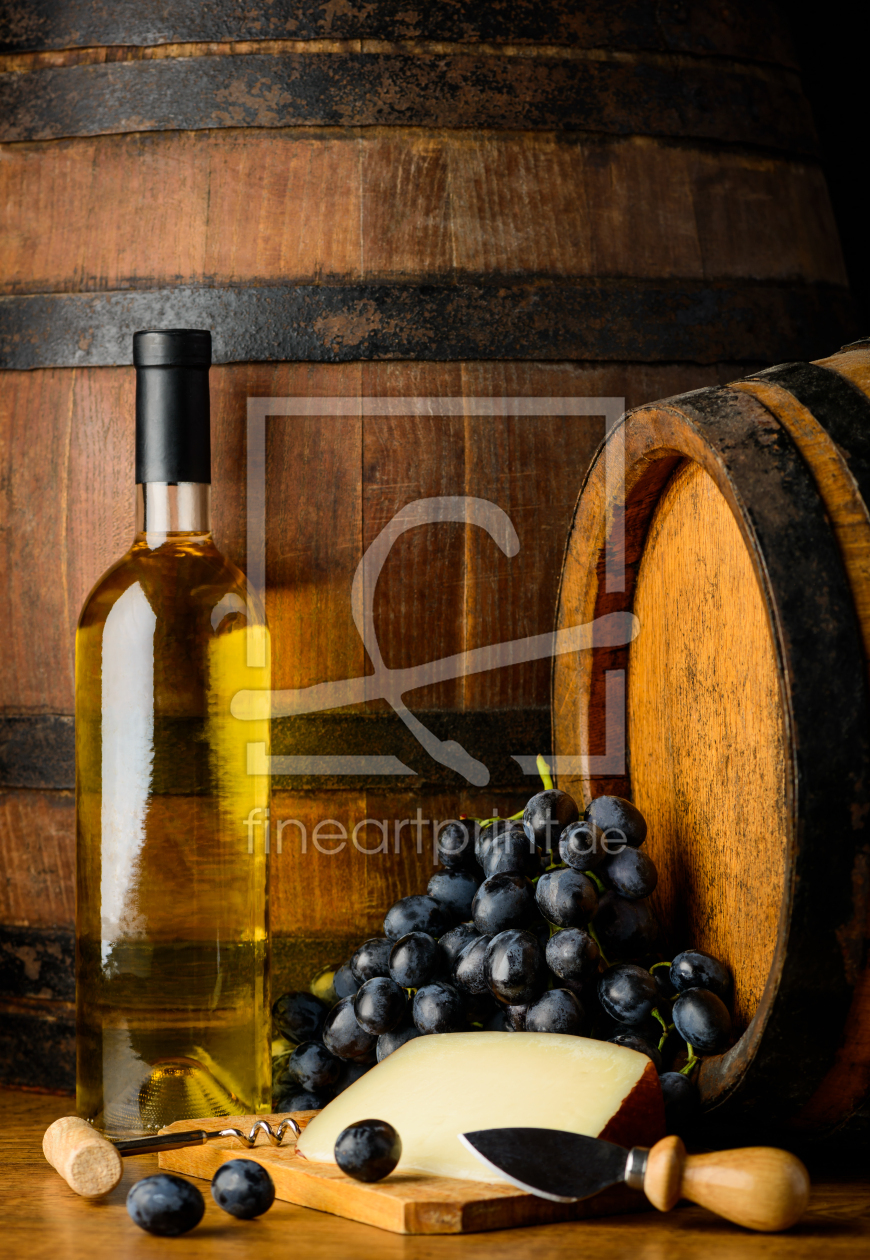 Weinflaschen und Käse auf Weißem Hintergrun...