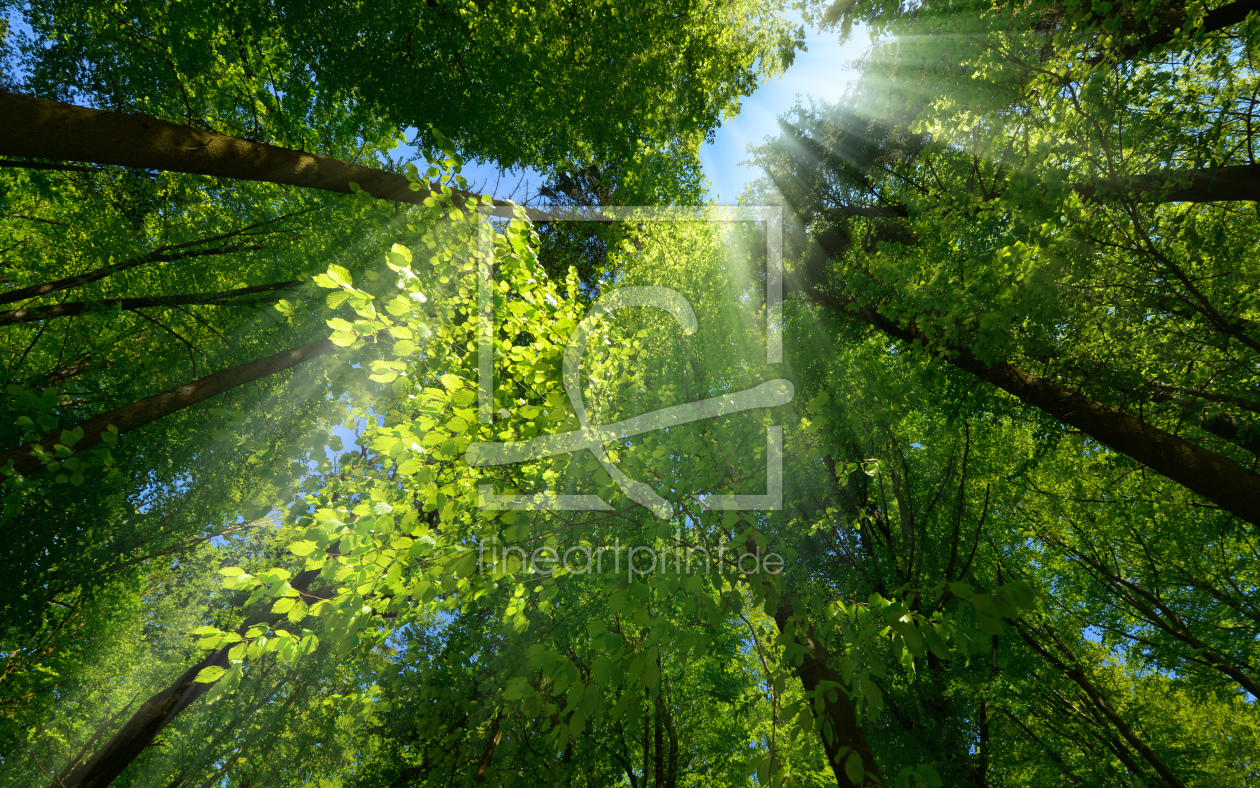 Sonnenstrahlen leuchten druchs Blätterdach