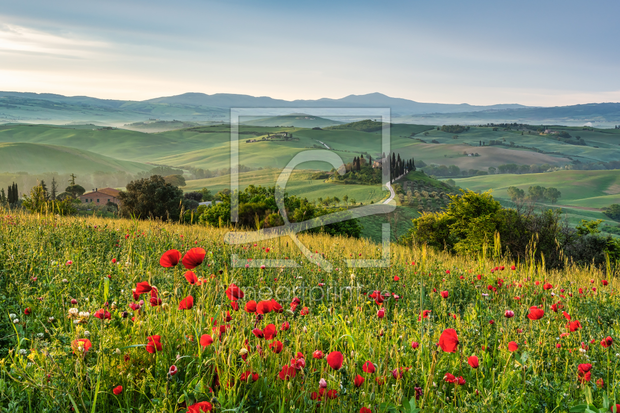 Morgennebel im Val d'Orcia in der Toskana