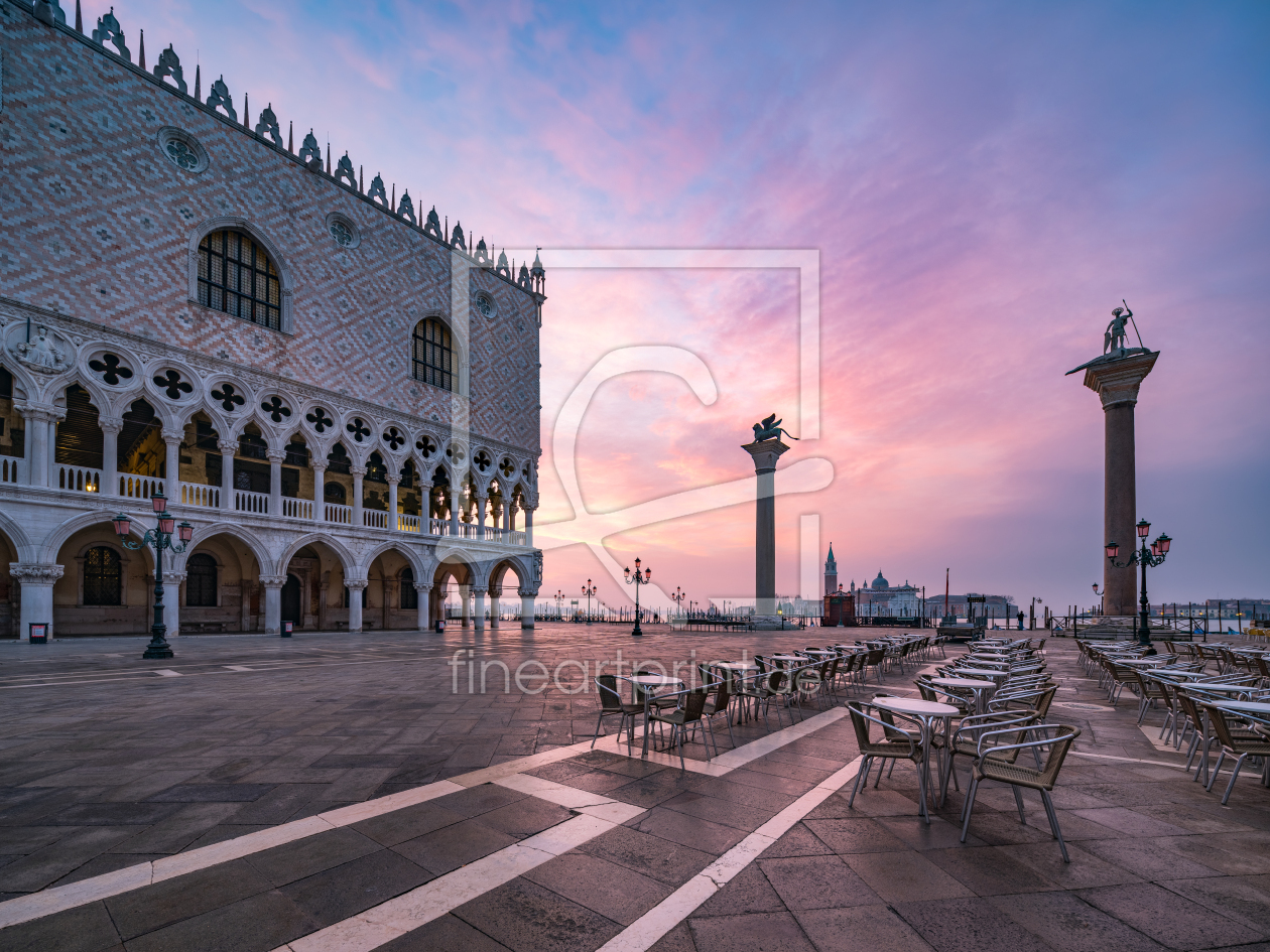 Sonnenaufgang am Markusplatz in Venedig