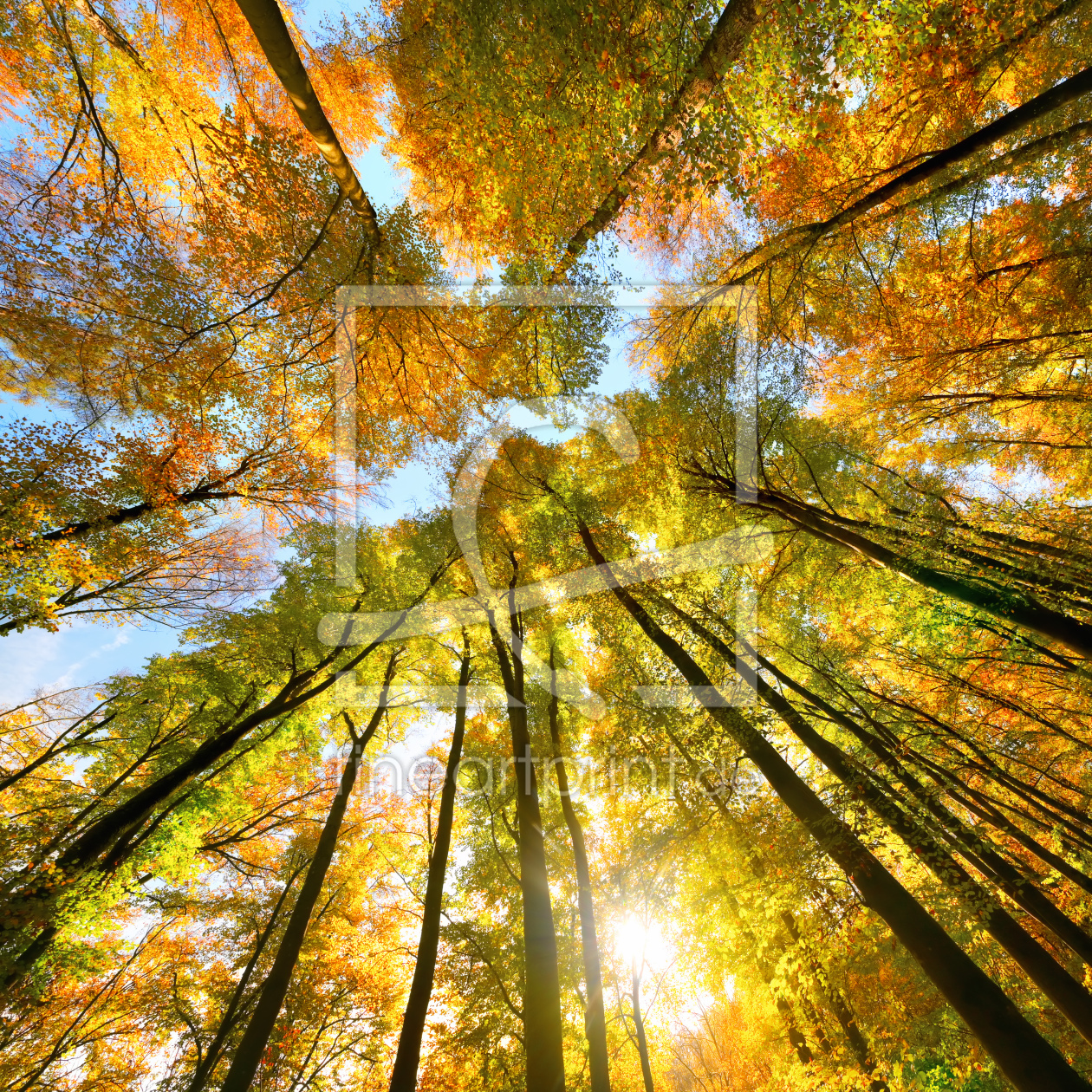 Herbstlandschaft mit Blätterdach aus hohen Bäumen