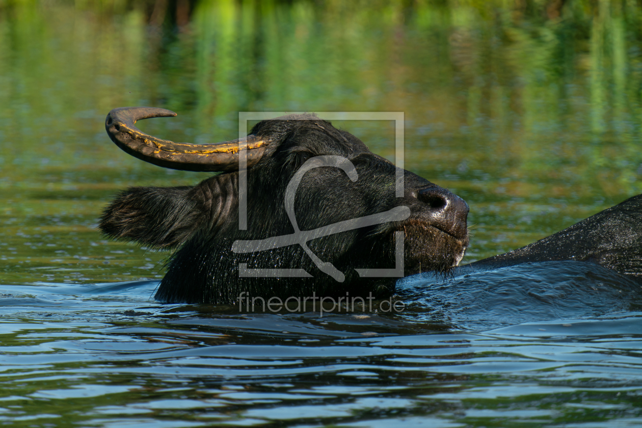 Eine Gruppe Wasserbüffel beim baden