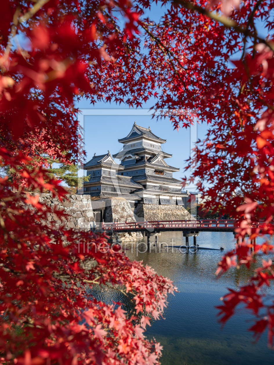 Burg Matsumoto mit rotem Herbstlaub