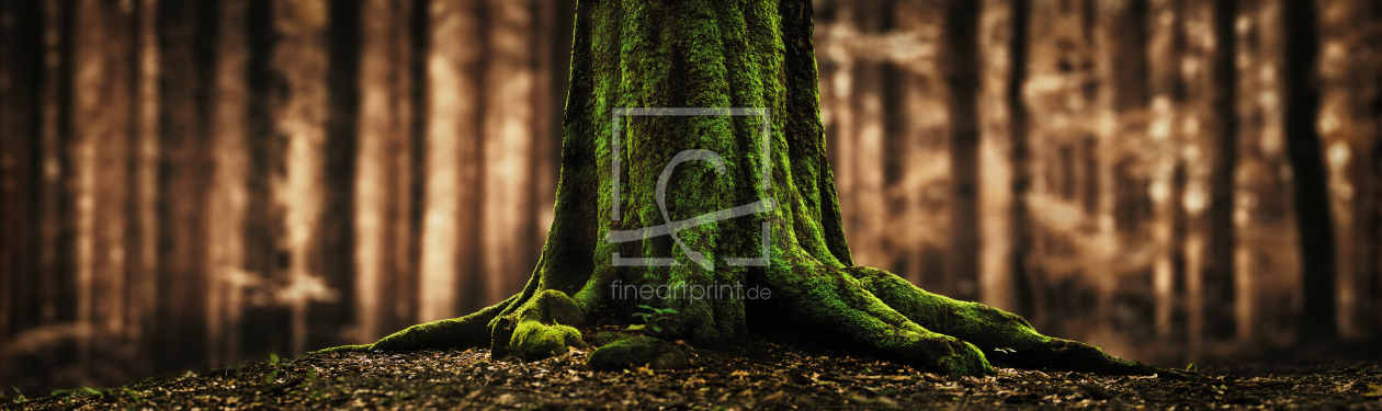 Baumstamm und Wurzeln im Wald mit Bokeh