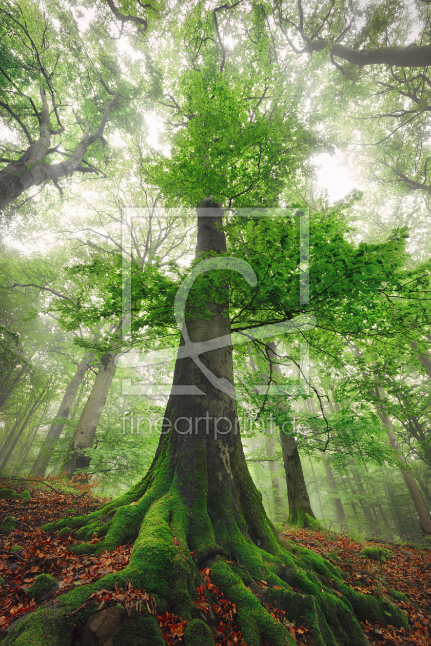 Goldenes Sonnenlicht bei Nebel im Redwood-W...