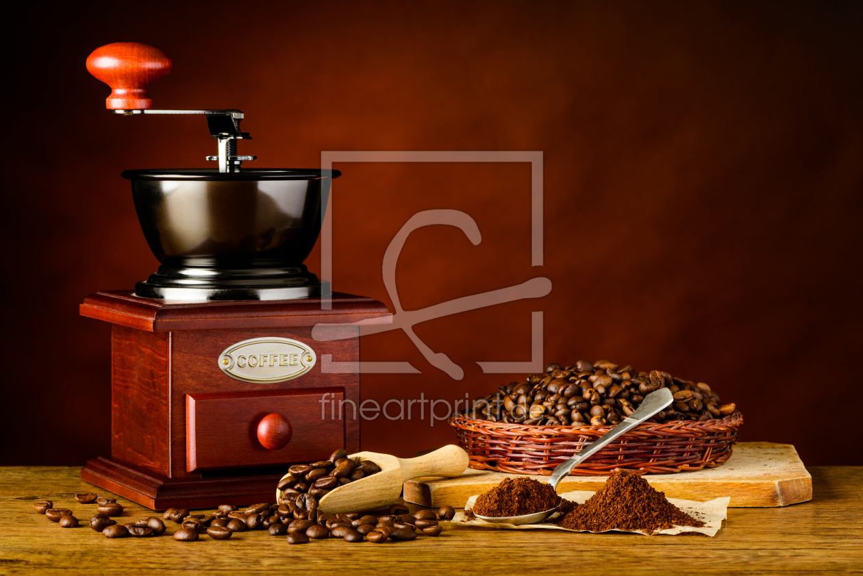 Kaffeemühle und Kaffeebohnen