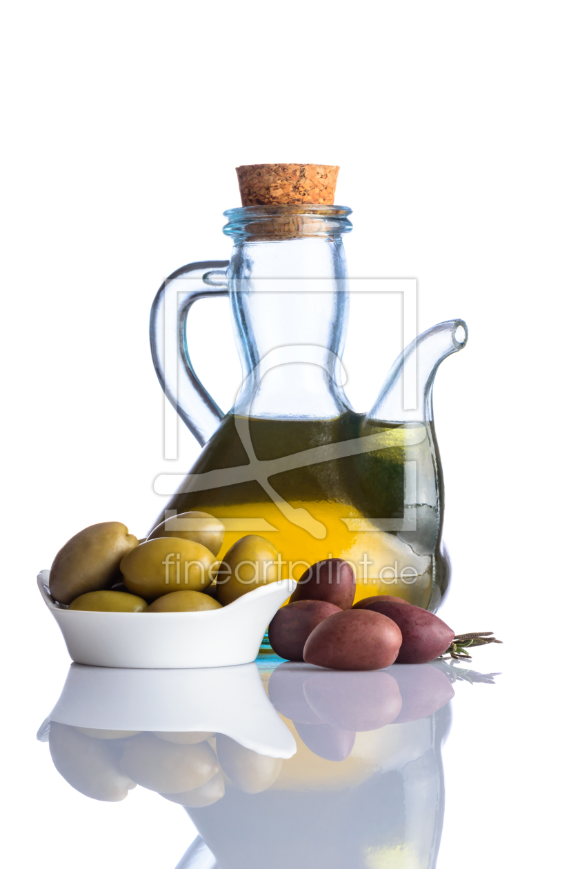 Olivenöl mit Oliven auf Weißem Hintergrund