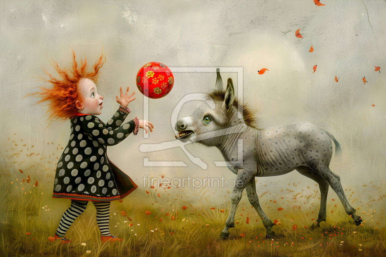 Hüpfendes Wiesenmädchen mit Puppe