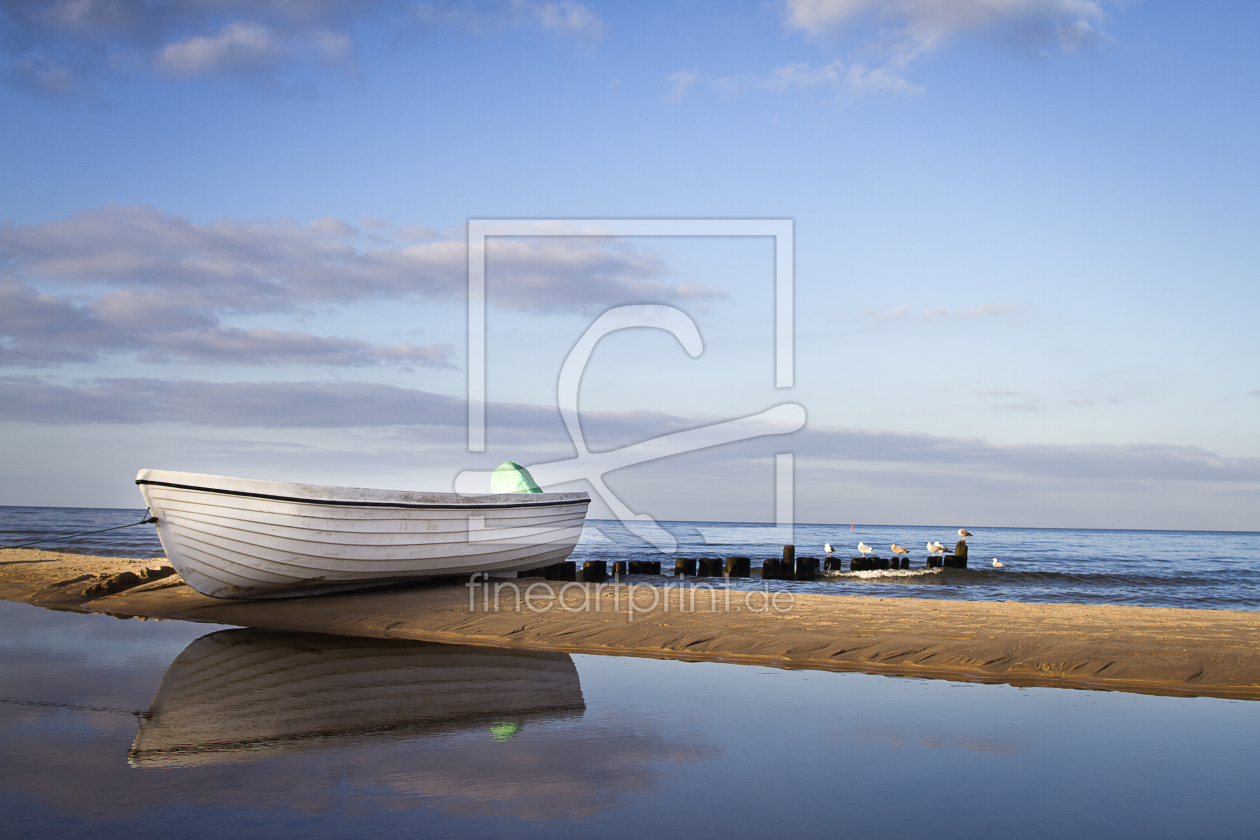 Bild-Nr.: 11460739 Weisses Fischerboot am Strand von Usedom erstellt von blende-acht