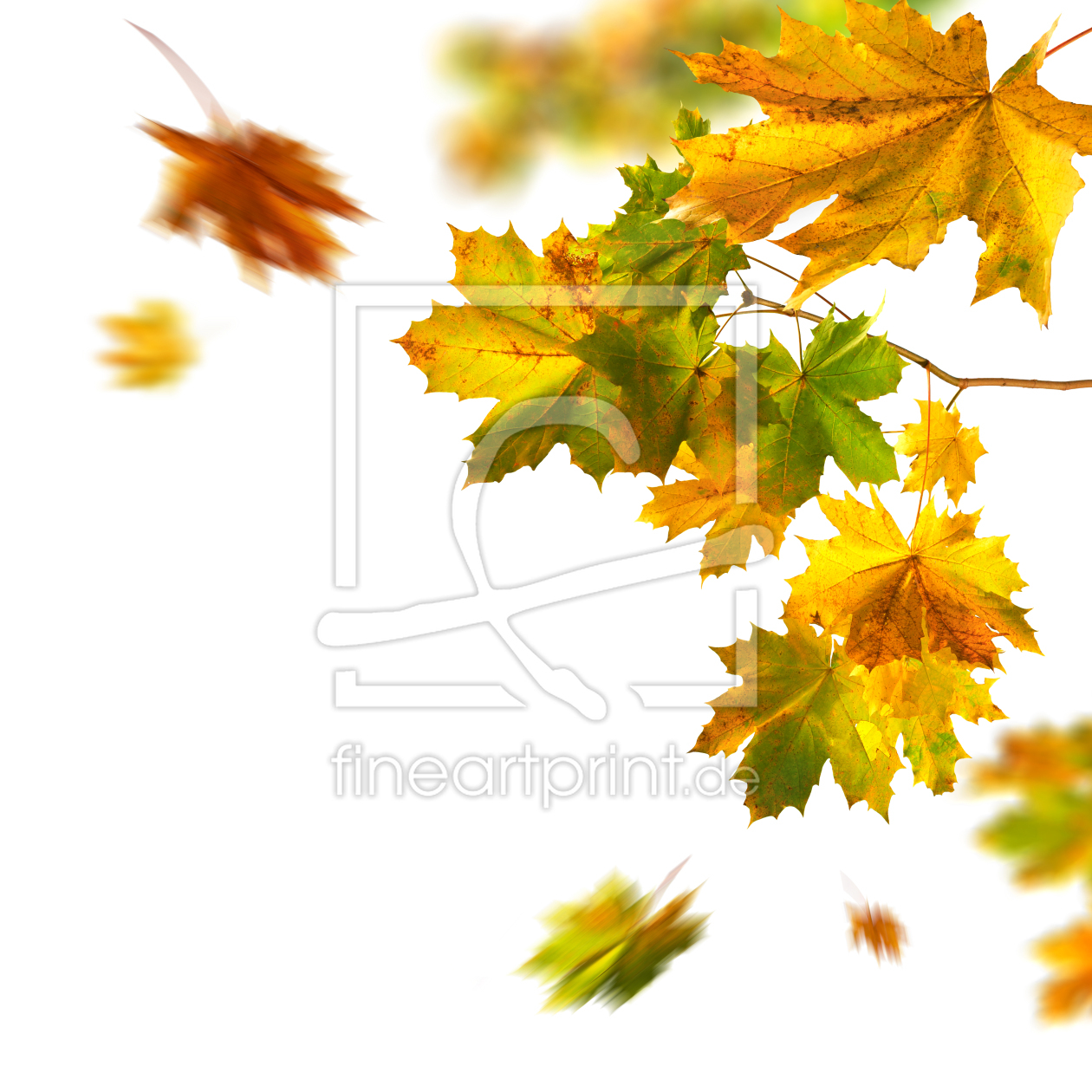Fallende bunte Herbstblätter vor Sonnenunterga...