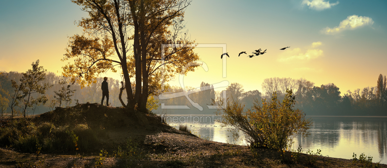 Malerische Naturlandschaft mit fliegenden Vögeln
