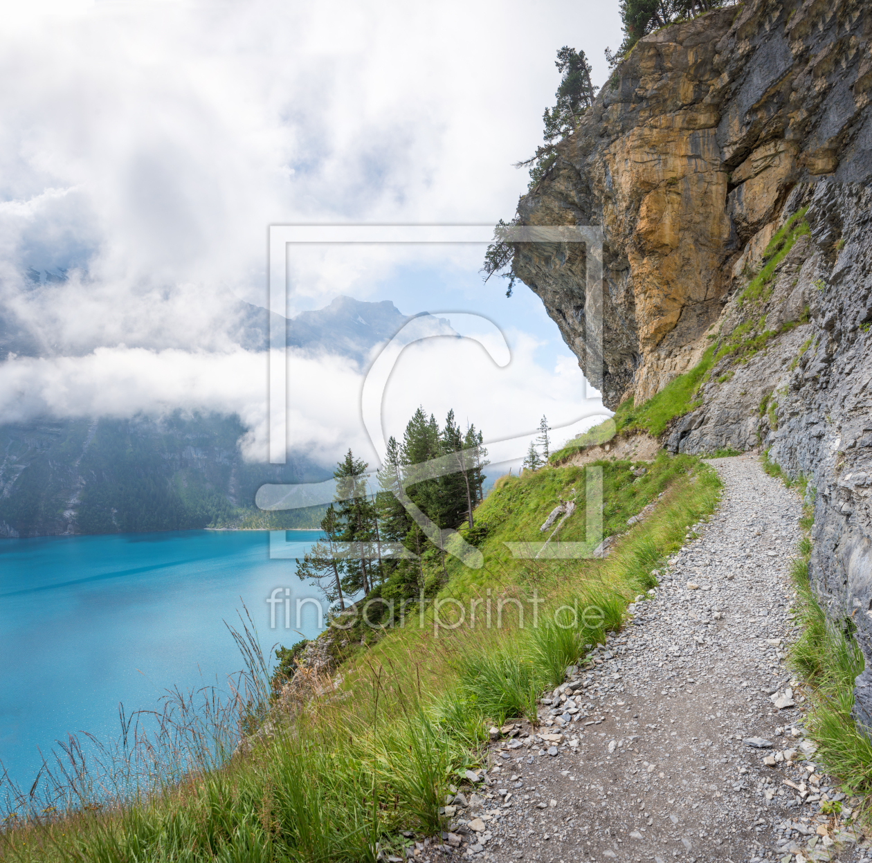 Felsenpfad am Oeschinensee Schweizer Alpen ...