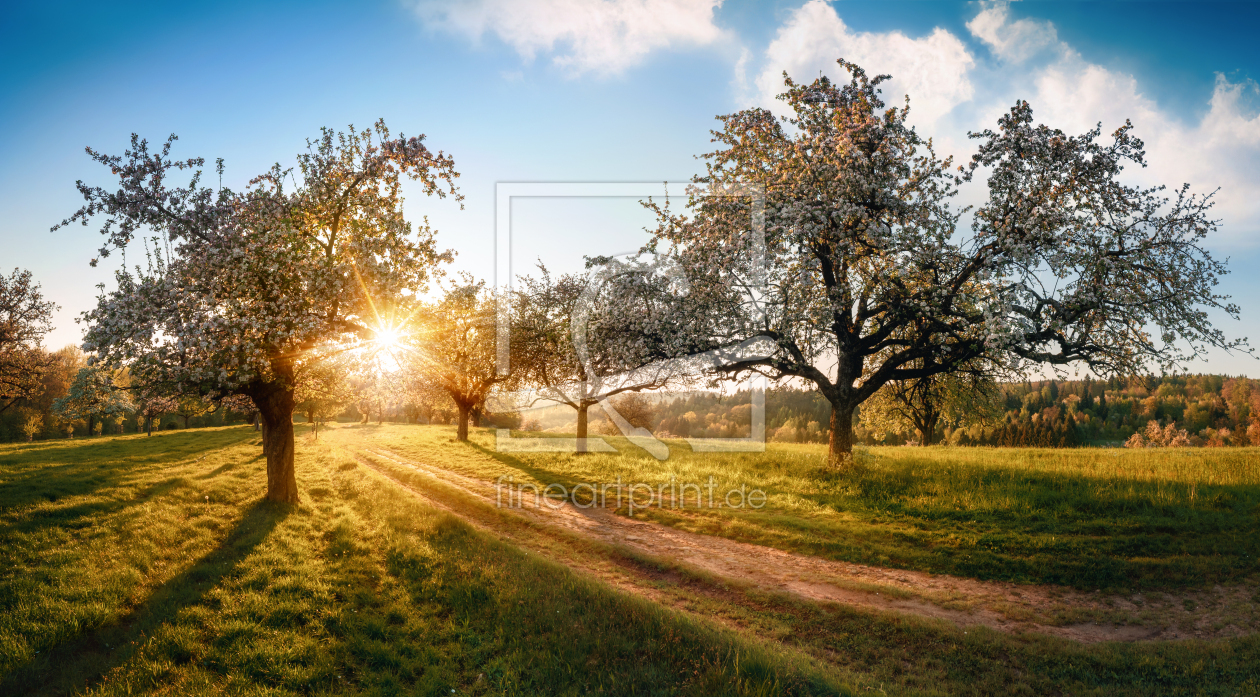 Ländliche Idylle bei Sonnenaufgang im Frühling