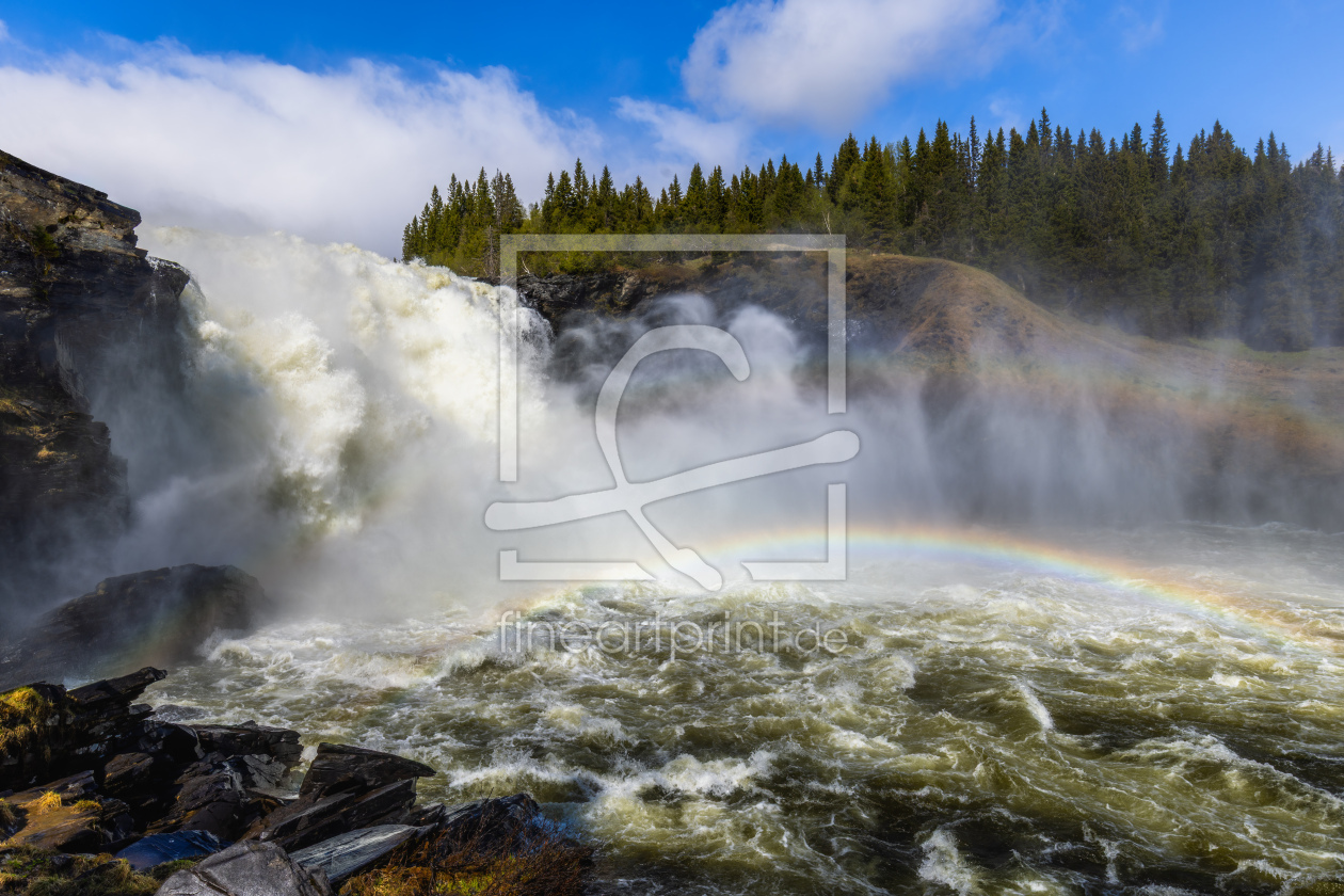 Morgens am Wasserfall in Schweden