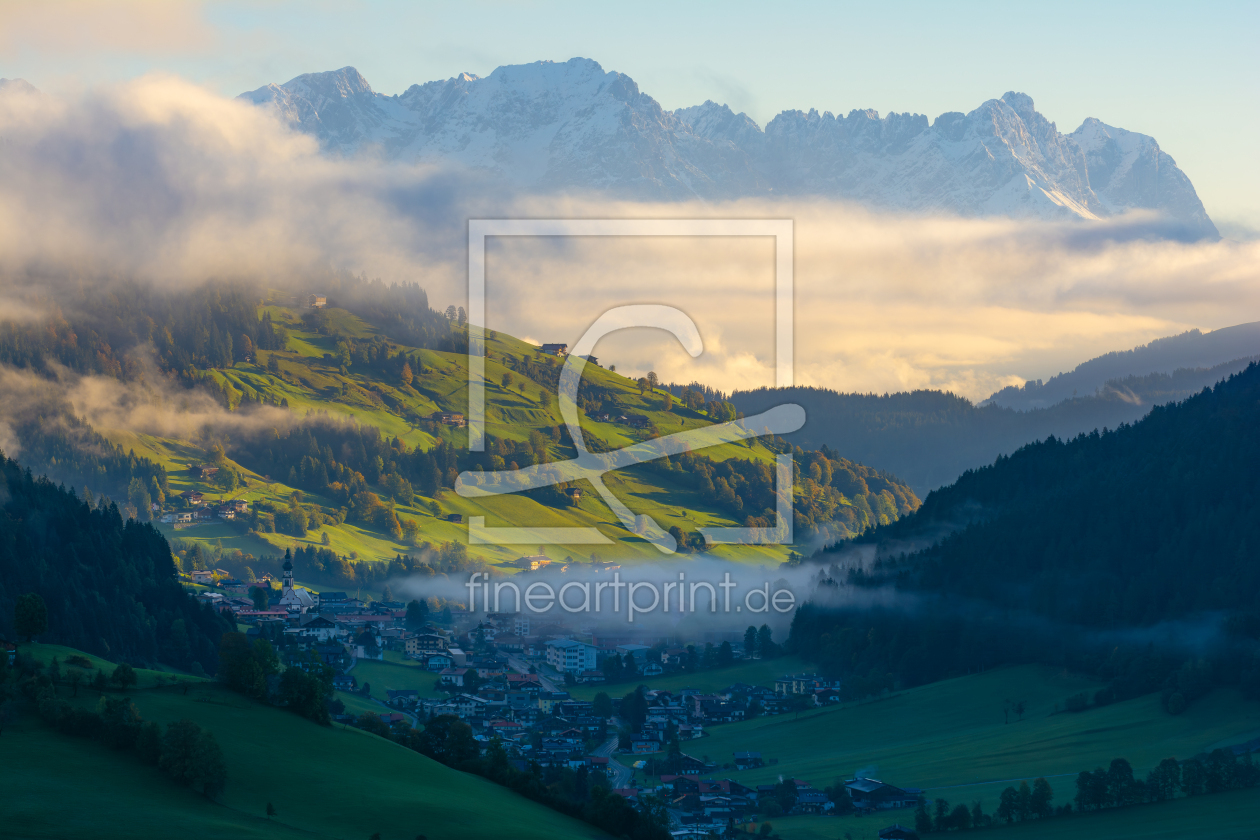 Kaisergebirge im Sonnenaufgang über Nebelme...